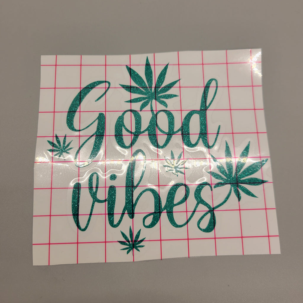 Elevate your space and spread positivity with our 4.5×4.5 Good Vibes sticker! Crafted with high-quality, durable vinyl, this vibrant auto decal features a cheerful cannabis leaf design, perfect for adding a pop of color and a dash of good energy to your vehicle, laptop, water bottle, or any smooth surface. Designed for easy application, each sticker comes with transfer tape, ensuring you can apply it without any stress or mess, making it ideal for anyone—whether you‘re a sticker aficionado or a beginner looking to personalize your belongings.